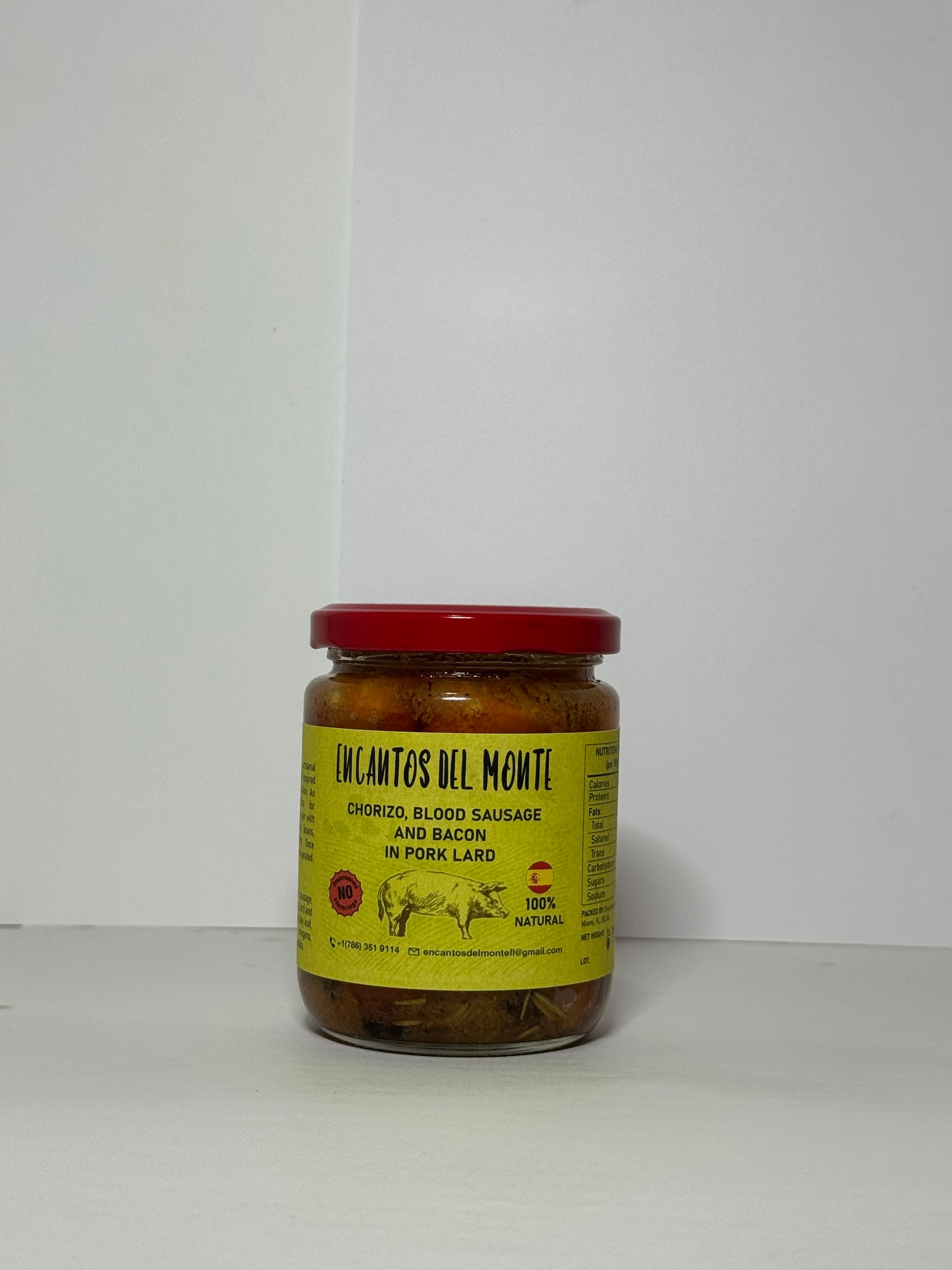 Preparation: Slowly cooked in pork lard, in the Spanish style, with an authentic, intense and natural Creole flavor, with a rustic touch that makes it unique and original. With natural preservatives such as rosemary, bay leaf, oregano, paprika, pepper, onion, garlic, and salt.